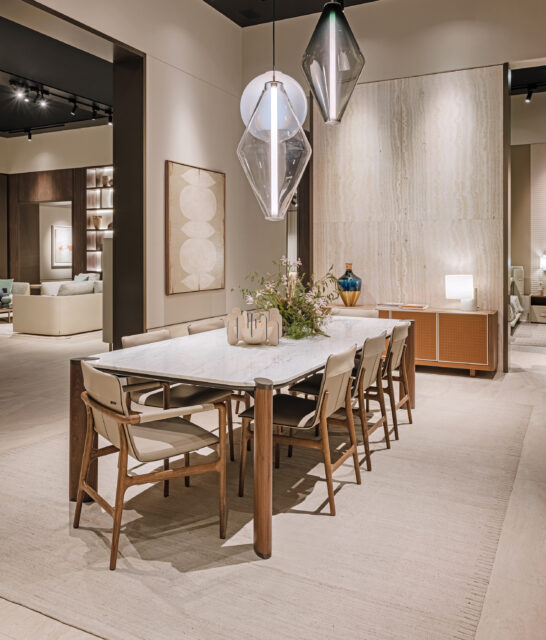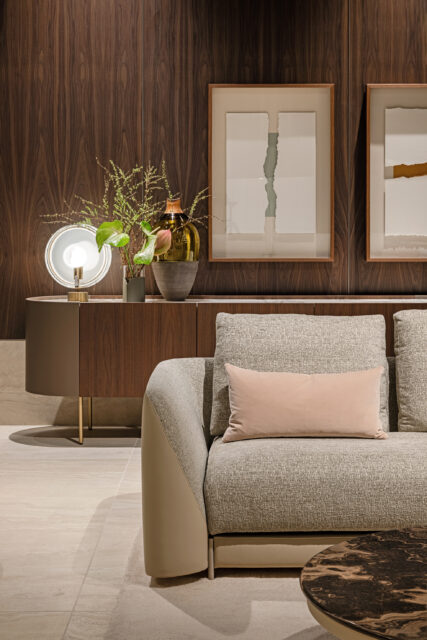 The inspiration is drawn from the composed grandeur and refined elegance of Milan’s 1930s residences, in particular the poetic rationalism of Piero Portaluppi. From him, Nunziati captures the spirit of balance, precision, and a timeless aesthetic. Resonating throughout the space is one of Portaluppi’s most iconic statements: